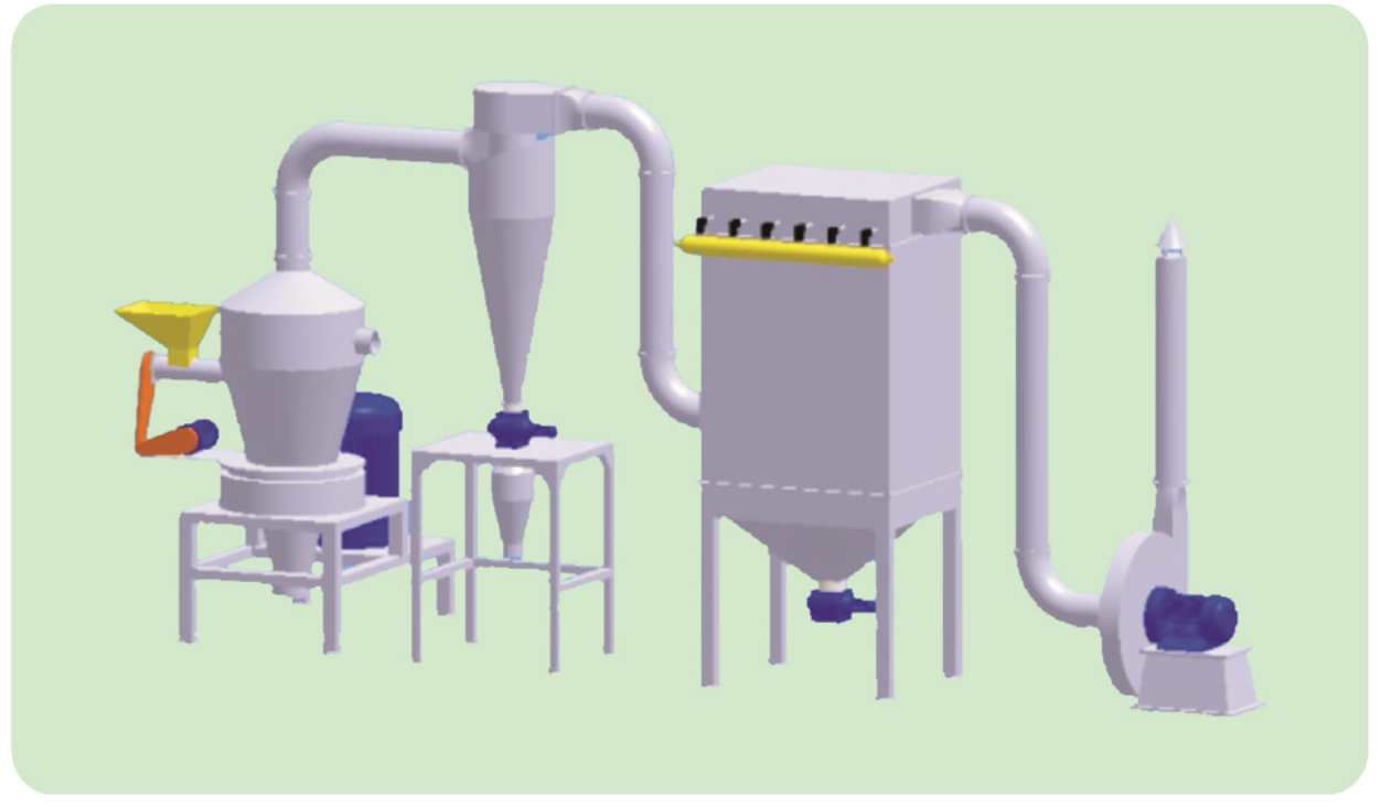 ② 可組成冷風粉碎系統(tǒng):熔點較低的合成樹脂、塑膠或粉碎時容易發(fā)熱的物料,可配合冷風冷卻粉碎。