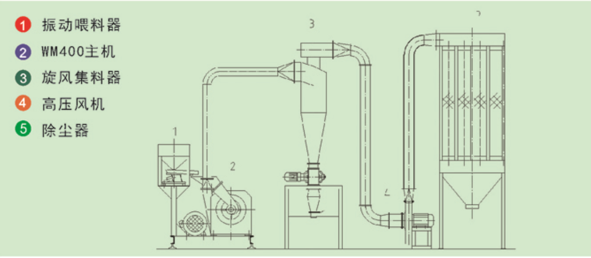 ② 可組成冷風(fēng)粉碎系統(tǒng):熔點(diǎn)較低的合成樹脂、塑膠或粉碎時(shí)容易發(fā)熱的物料,可配合冷風(fēng)冷卻粉碎。
