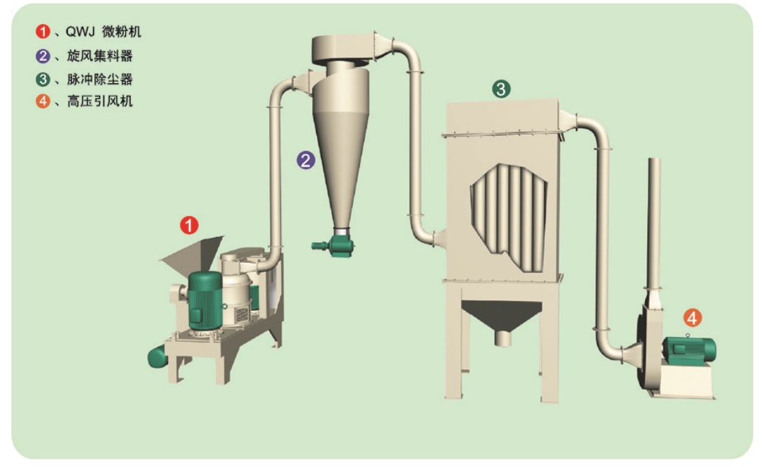 ① 本機(jī)是一種立軸反射型微粉碎機(jī),在粉碎室內(nèi)設(shè)有分級裝置,粉碎后的物料受氣流作用,經(jīng)分級裝置而收集,分級裝置取代通常粉碎機(jī)篩網(wǎng),能同時(shí)完成微粉粉碎和微粉分選的兩道加工工序,粉碎效率高。
