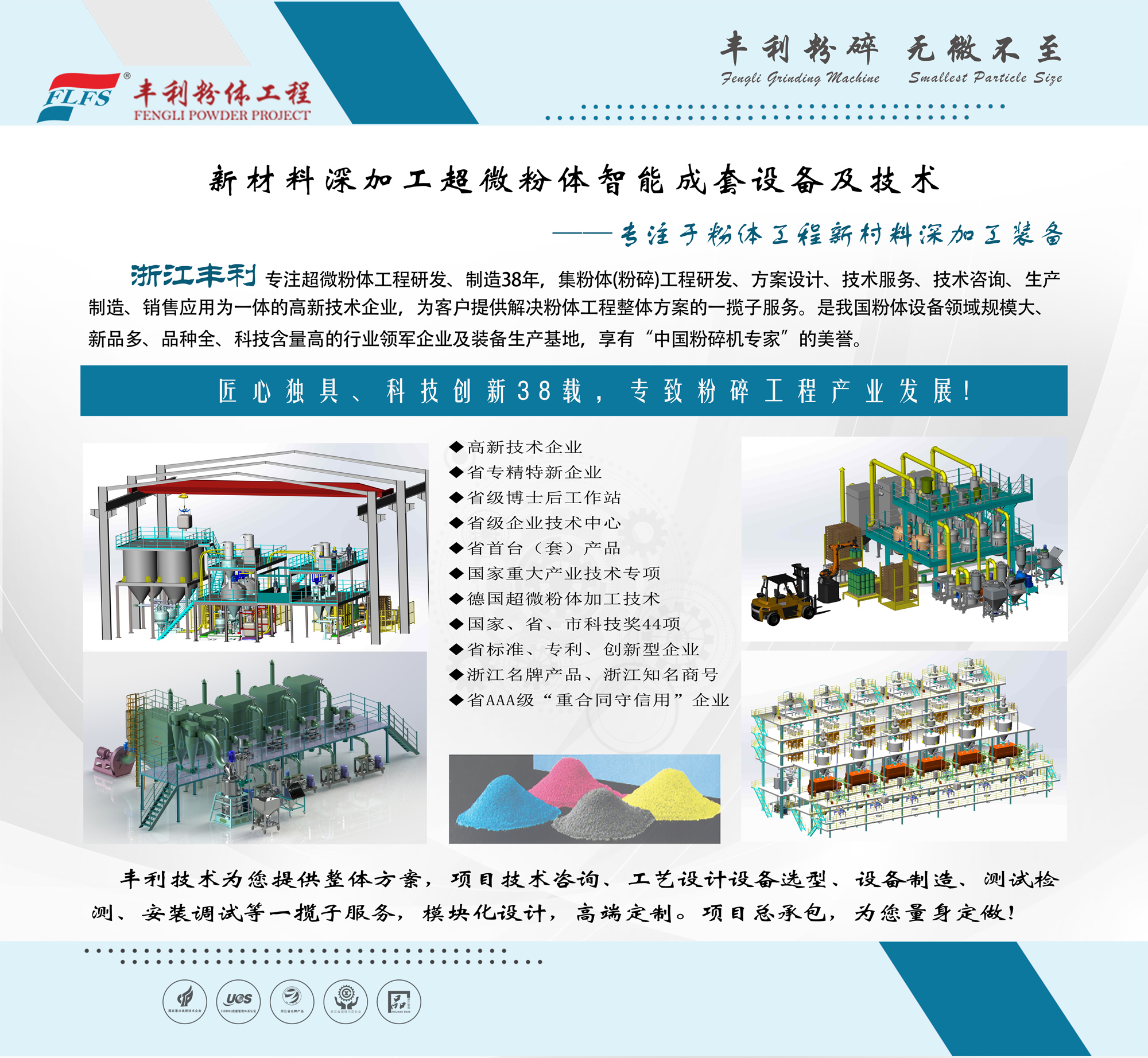 浙江豐利專注超微粉體工程研發(fā)、制造38年,集粉體(粉碎)工程研發(fā)、方案設(shè)計(jì)、技術(shù)服務(wù)、技術(shù)咨詢、生產(chǎn)制造、銷售應(yīng)用為一體的高新技術(shù)企業(yè),為客戶提供解決粉體工程整體方案的一攬子服務(wù)。是我國粉體設(shè)備領(lǐng)域規(guī)模大、新品多、品種全、科技含量高的行業(yè)領(lǐng)軍企業(yè)及裝備生產(chǎn)基地,享有“ 中國粉碎機(jī)專家”的美譽(yù)。